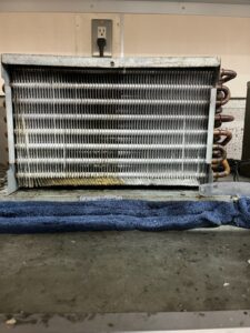 熱交換器の洗浄作業です❕ 油汚れや埃の目詰まりがあるとデメリットばかりです。 排熱が悪くなりコンプレッサに負荷がかかり冷却能力低下にもつながります。 定期的な洗浄作業はした方が良いと思います!